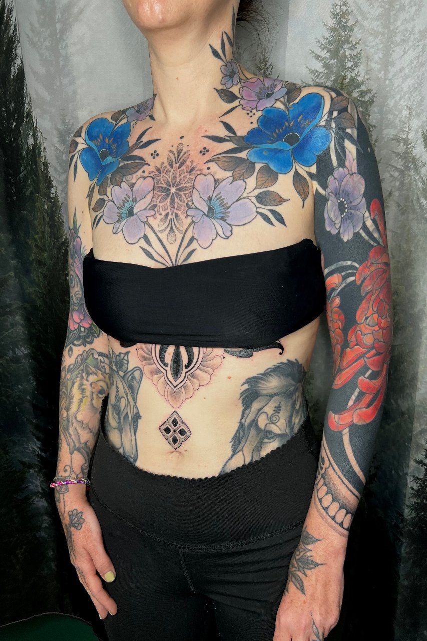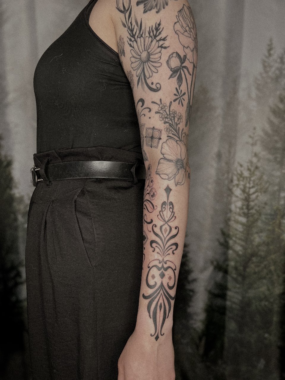 - StylesNeotraditionalBlackworkOrnamentalBotanical / Floral