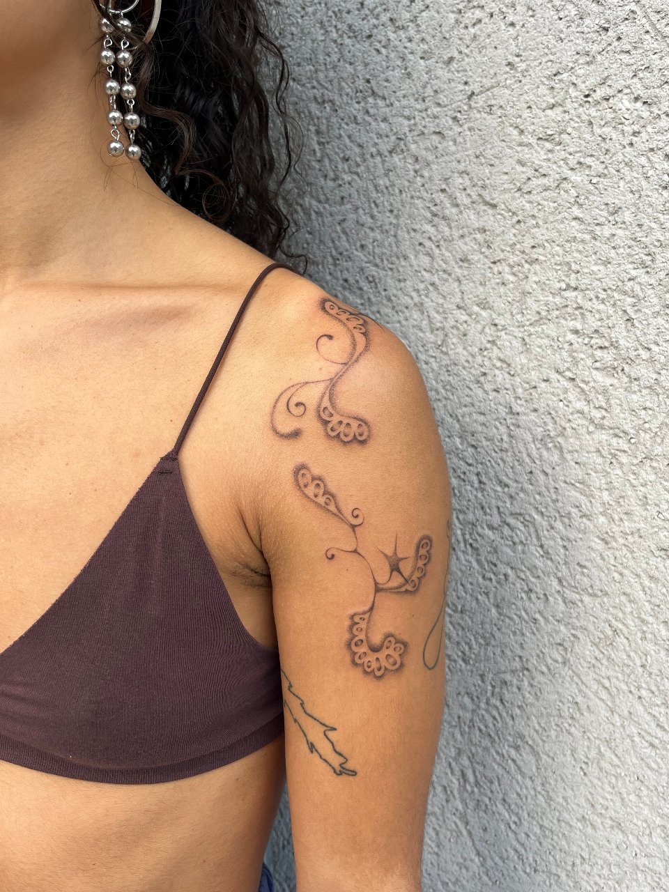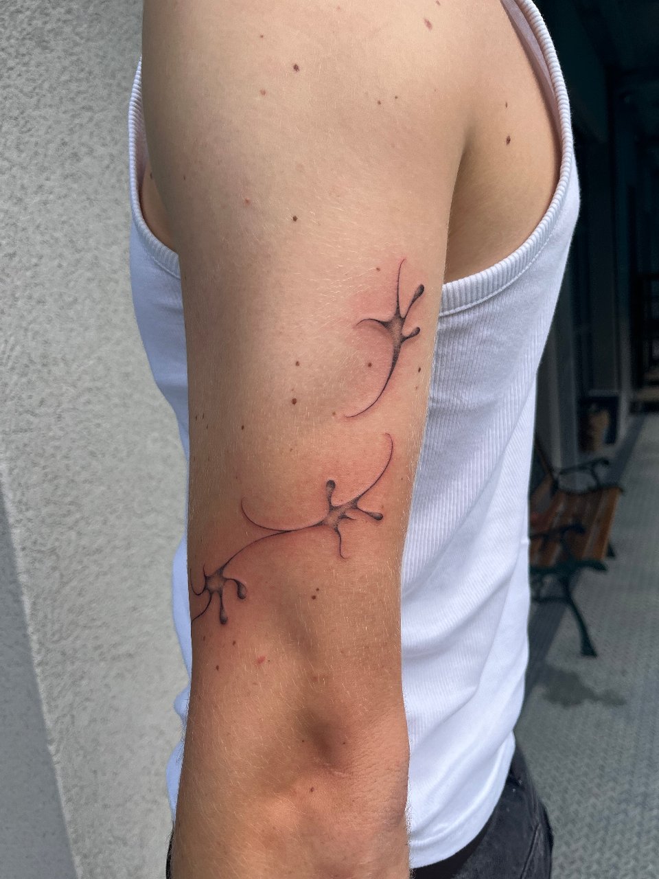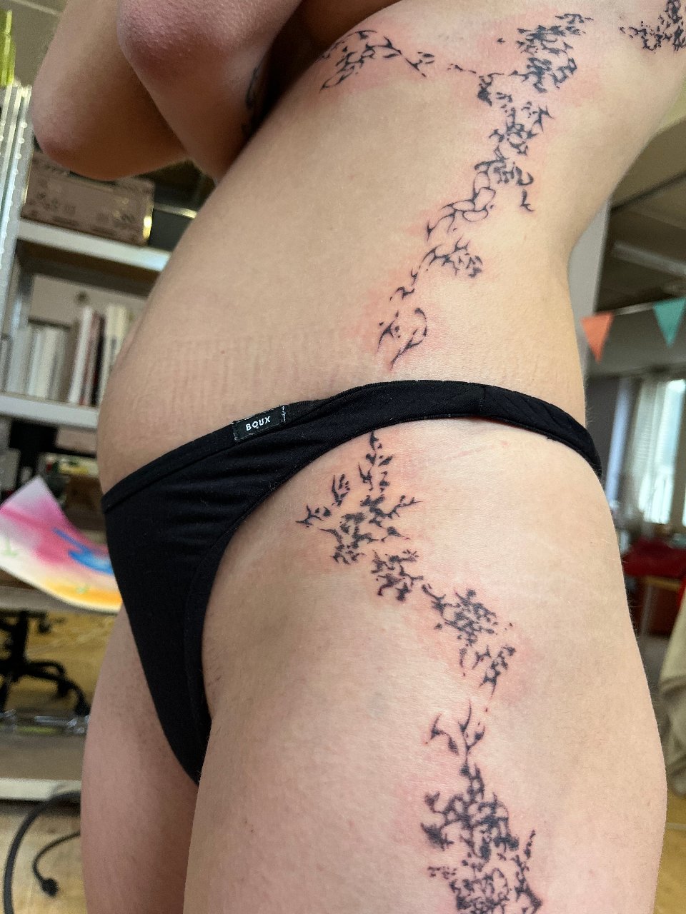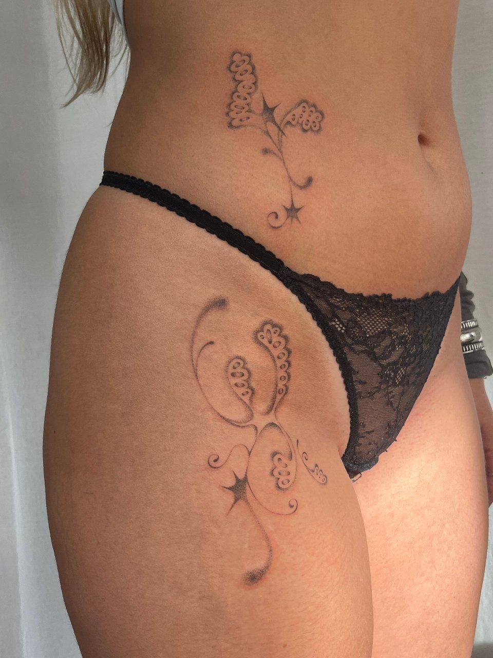 My name is Lisa, and I’m a tattoo artist from Switzerland. In my work, I use abstract shapes to highlight and adorn the body, creating designs that flow naturally with each person’s unique body. Most of my tattoos are painted directly onto the skin, allowing me to perfectly tailor each piece to the individual. I also want my clients to feel comfortable and relaxed — surrounded by a cozy, welcoming atmosphere. I’m really looking forward to meeting you.