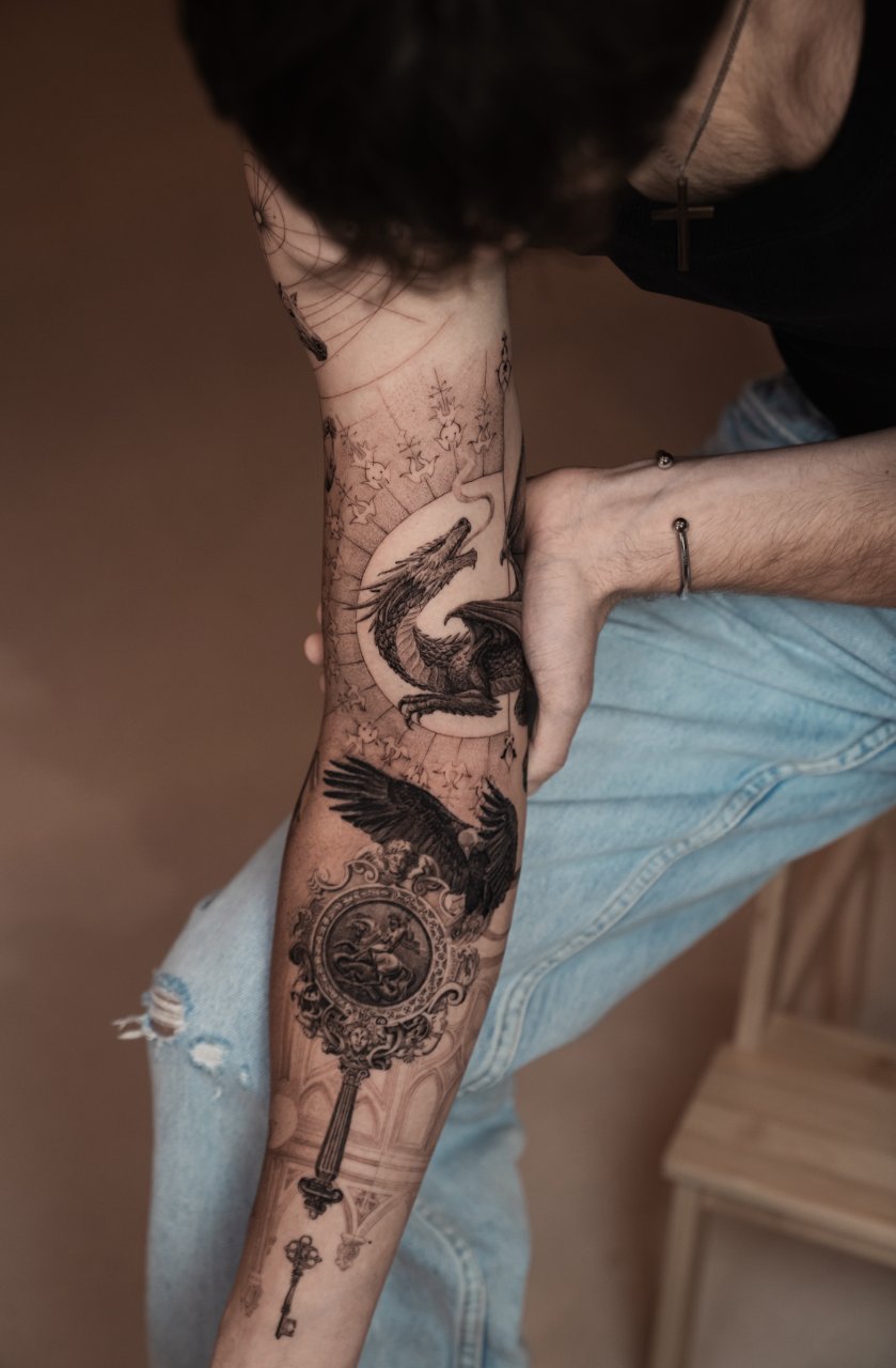 Hey, Ich bin Tom, Tattoo Artist aus Zürich mit Fokus auf hochwertige, konzeptionelle Arbeiten. Für Fragen, Inspirationen und dein persönliches Projekt steh ich dir jederzeit zur Verfügung.