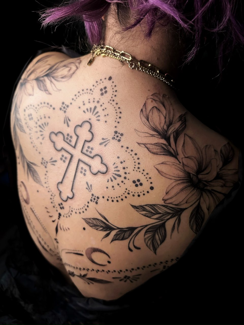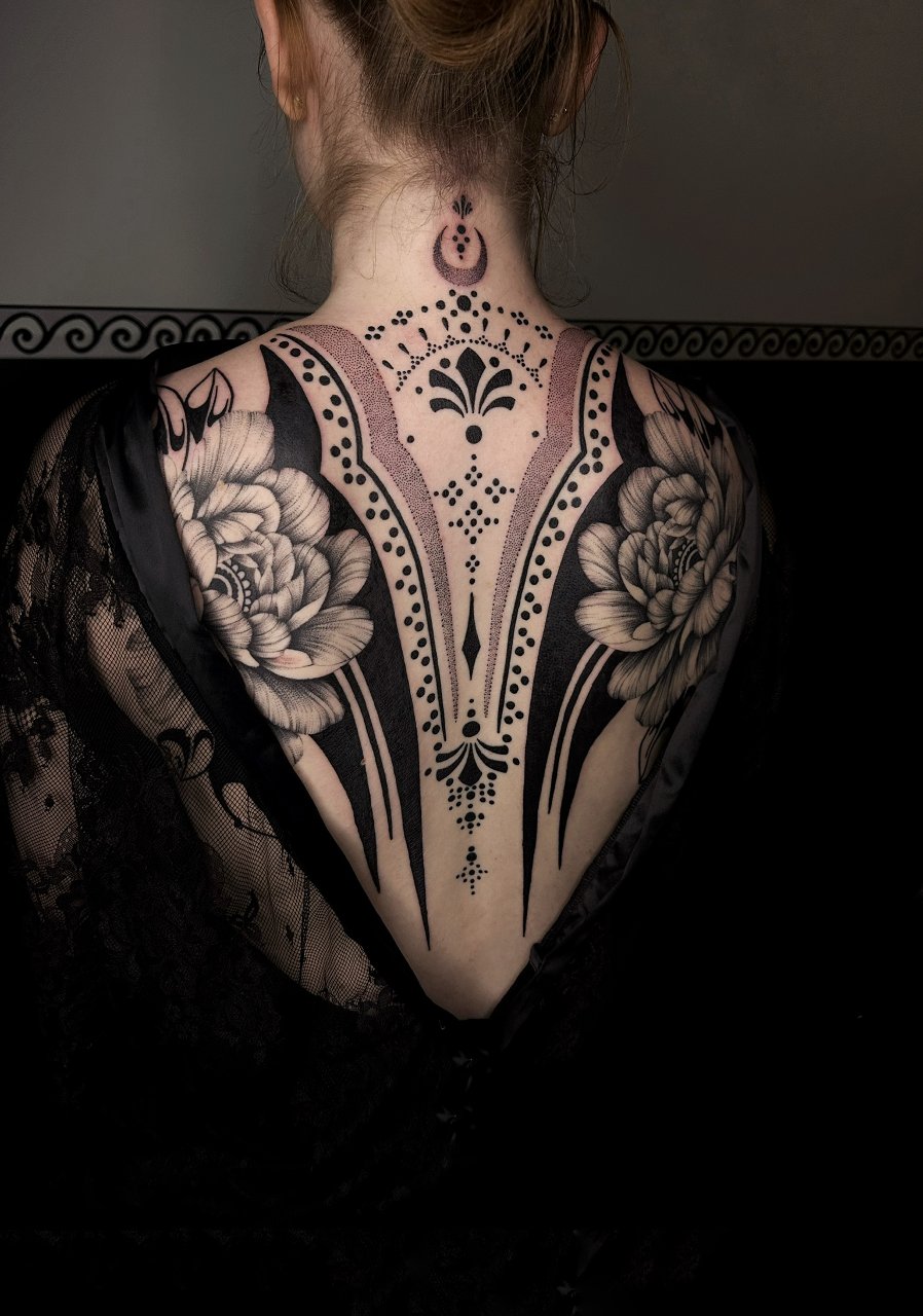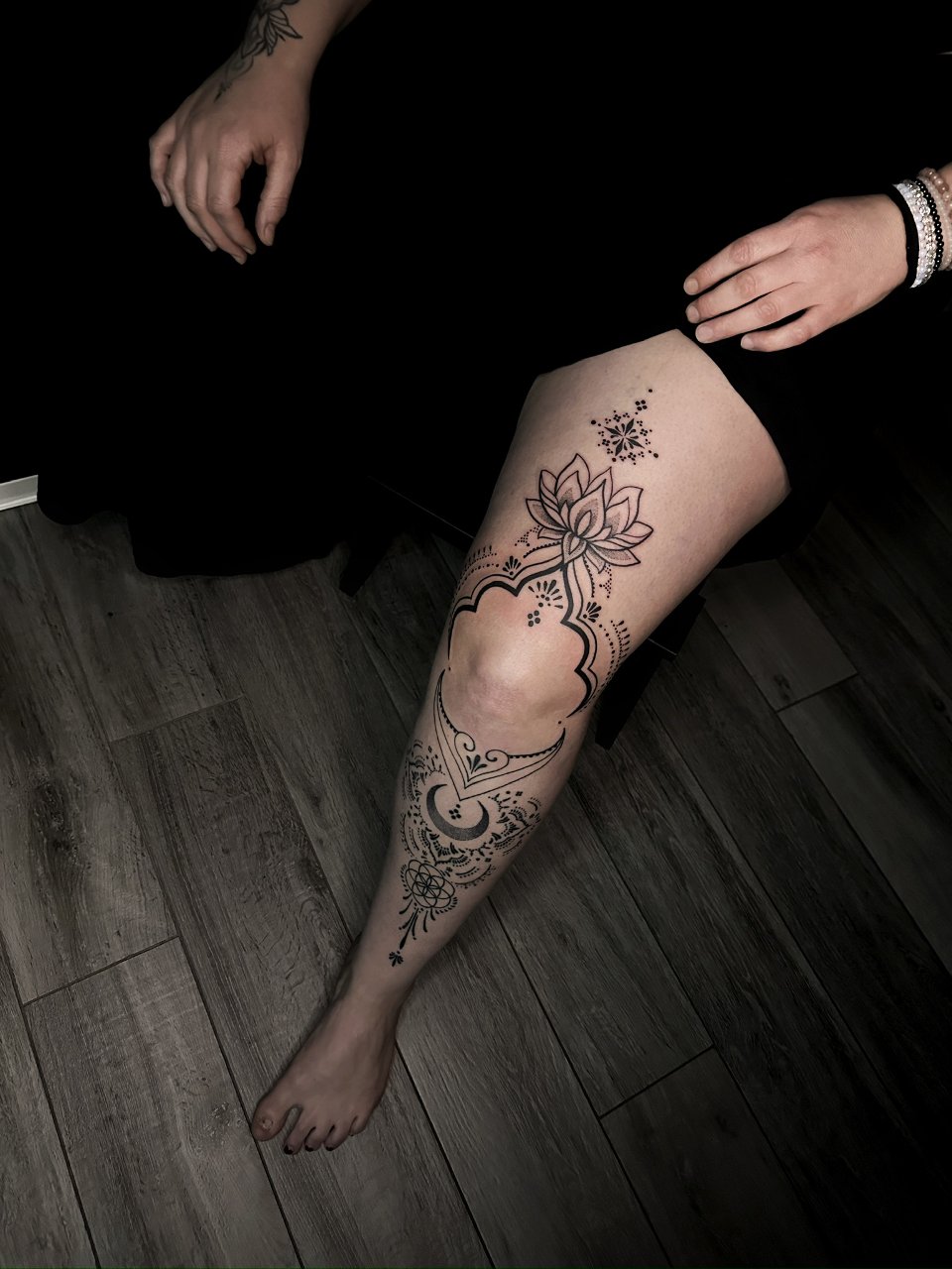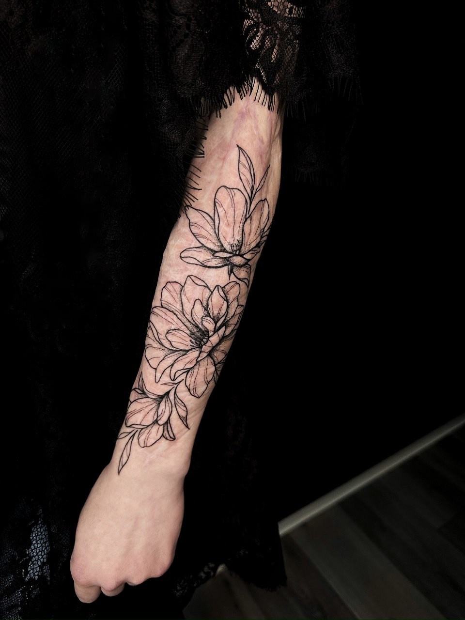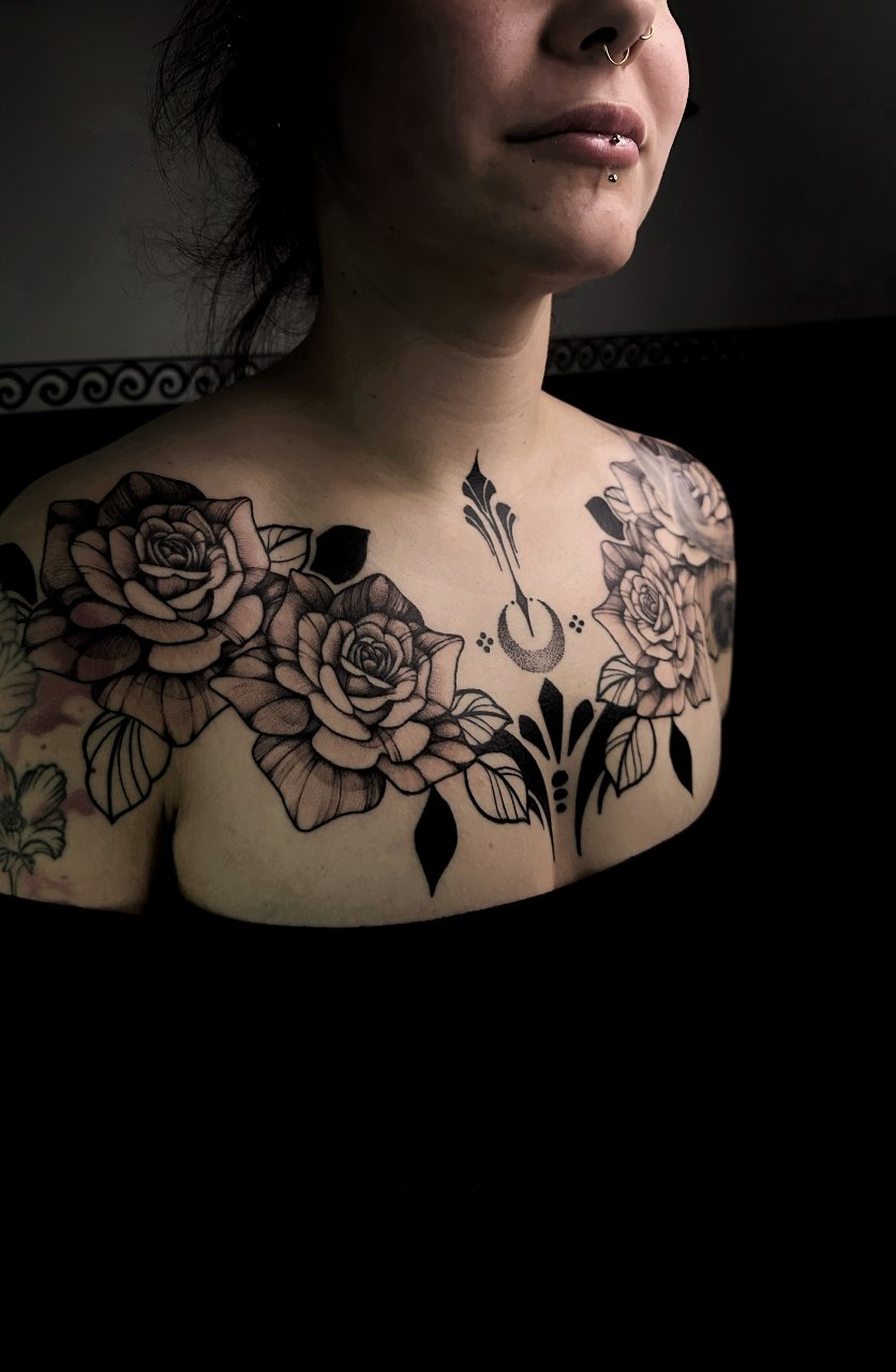 Seit Kindheitstagen ist die Kunst ein ständiger Begleiter auf meiner Reise. Seit 2021 verfolge ich (Julia, julialea.tattoo) meinen Traum des Tätowierens. Mit viel Leidenschaft und Begeisterung widme ich mich vor allem ornamentalen, floralen und Oneline-Motiven. Ich freue mich Dein individuelles Design für dich zu gestalten.